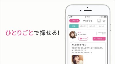 また、ひとりごとを投稿しているユーザーは性別・年齢・居住地・写真掲載の条件で検索する事が出来ます。