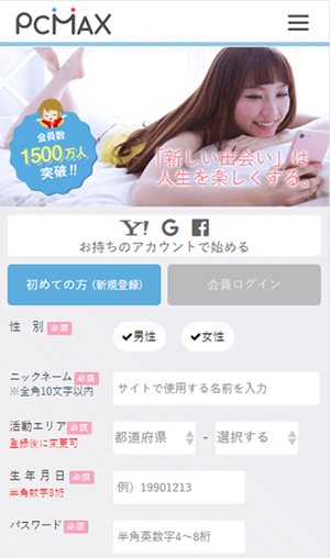 PCMAXを始めて利用される方は、インストール後、アプリを起動して「はじめての方」という部分から登録を開始して下さい。PCMAXのWEB版をすでにお使いの方は「すでに会員の方」という部分から登録をします。データを引き継げるので入力などの手間を掛けずに登録作業を進めていく事が出来ます。また、Facebookのアカウントをお持ちの方であれば、そちらのデータを使って登録する事も出来ます。