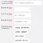 アプリ版の場合は、App StoreもしくはGoogle Playからインストールして登録を開始します。アプリ版から新規登録される場合はアプリを起動して、性別・ニックネーム・ログインパスワード・地域・生年月日を入力します。その後は年齢確認を行うと登録が完了となります。